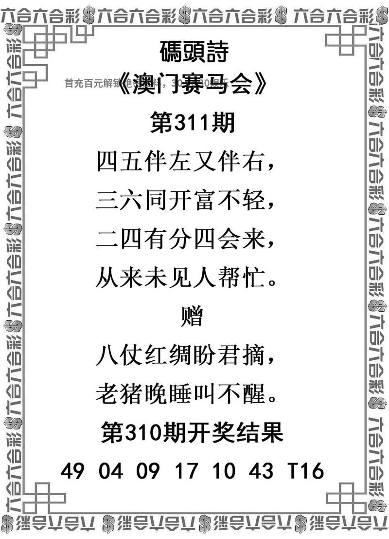 311期解析:八仗红绸盼君摘,老猪晚睡叫不醒。