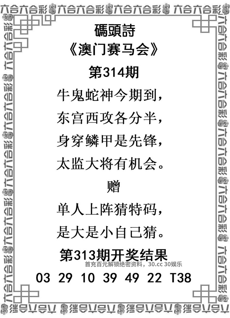 314期解析:单人上阵猜特码,是大是小自己猜。